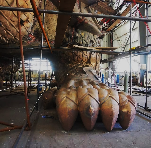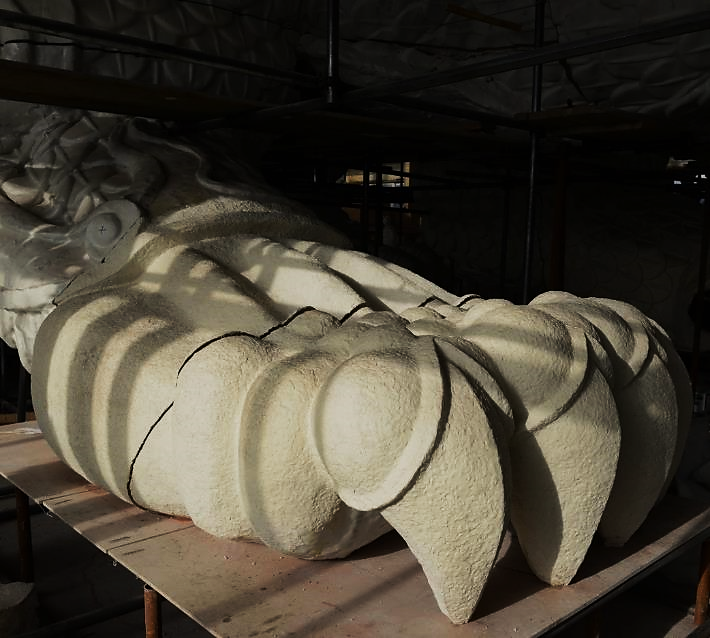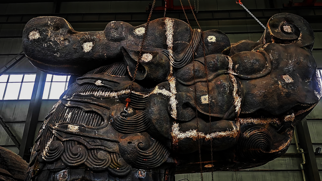 在《天下第一鳌》的制作过程中,曾会长也运用了VR和3D打印技术,他认为这种先进的虚拟技术比传统的雕塑创作方式更直观、清晰。总重落成的这件雕塑总高11.35米,总宽10.2米,总长18.3米,用铜55吨,为目前世界上最高的鳌题材雕塑。
