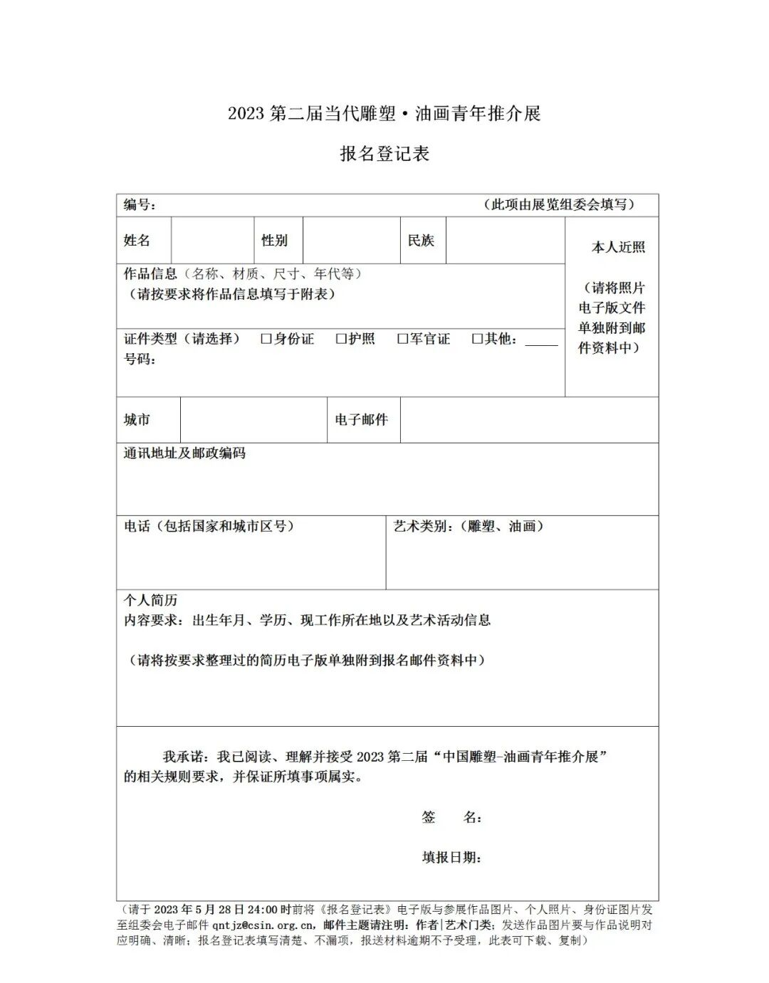 附:第二届当代雕塑·油画青年推介展报名表下载地址(http://www.csin.org.cn/news.detail.asp?ID=1343)