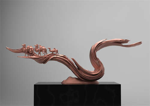 《驼铃声声》、 树脂仿铜、90?28?13cm、2024、雕塑