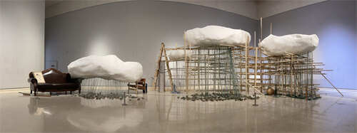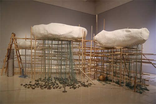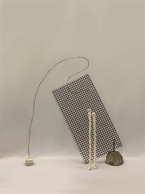 《八月的雨里藏着夏日最后的秘密》 材料:石膏、木方、纸浆、线 尺寸:尺寸可变 创作年代:2024年